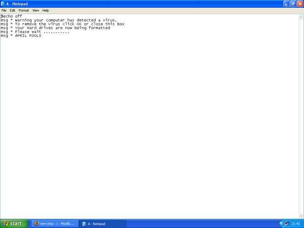 Cuando la víctima se inicia allí ordenador que aparecerá el primer mensaje, cuando haga clic en aceptar otro aparecerá y hacer que la víctima piensa que se está formateando disco duro hasta que el último mensaje diciendo el día de los inocentes.