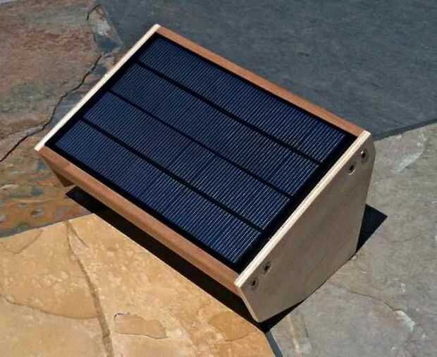 La gran célula solar produce 310 mAh, que puede cargar completamente la batería de la MMB en sólo 6,5 horas de sol. Eso es muy bueno y debería satisfacer el apetito de poder de tu iPhone cada día mucho del año excepto en invierno cuando estás jugando un montón de juegos o algo. He podido comprobar esa carga tiempo la primera vez cargan mi MightyMintyBoost nuevo. Pero conseguir que completo sobre el rendimiento ayuda a tener la celda en el ángulo óptimo para el sol y convertir de vez en cuando para que sigue el sol durante el día. Así que diseñé un marco de apoyo para mi célula solar que tiene tres ángulos de inclinación diferentes para optimizar el ángulo de la célula para diferentes épocas del año.