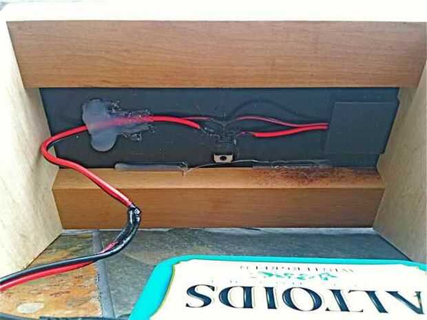 Uso caliente derretir pegamento en cola el cable a la parte posterior de la célula. Utilice un pegote grande agradable para actuar como un alivio de tensión en el cable. Ver la imagen. Evitará que los cables del regulador de voltaje siendo apretamientos, estiramientos y dañó más adelante.