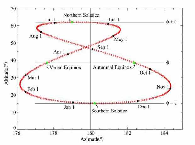 En el verano, de mayo a julio, usted querrá usar el ángulo de verano durante el día. En primavera y otoño, que marzo, abril, agosto, septiembre y octubre utilizan el ángulo del equinoccio. En el invierno, noviembre a febrero utilice el ángulo del invierno. Determiné estos meses y ángulos usando el analema que se muestra a continuación. Sólo son aproximados y con el analema se puede determinar con mayor precisión las mejores fechas pasar de un ángulo al siguiente.
