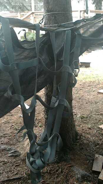 , Ideó una manera para que los niños a entrar en esta red conectando una red de carga. También trabajaría con una escala de cuerda, o tablas como una escalera atados a un árbol. Este gran parque de los niños ha sido congelada, llena de nieve, llevó a cabo adolescentes y adultos y todavía no se ha debilitado. En el verano ha atraído capullos de ciertas polillas fascinante de los niños. Se ha utilizado también como una fortaleza, un lugar para leer un libro y como un centro de contención para los más pequeños cuando han necesitado dos manos adultas.