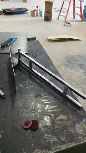 soldado con autógena, el brazo de soporte basculante de tubo cuadrado de 3/4 de pulgada y la placa de montaje fuelle está construido en placa de 1/4 de pulgada y los tornillos son de 1/2 curso hilo grado 8.