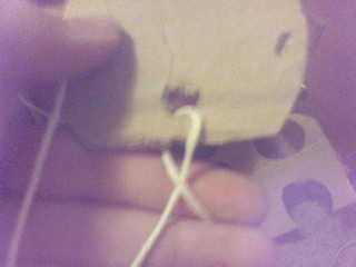 Poner la cadena a través de los agujeros hasta que enganche en el nudo que hiciste.