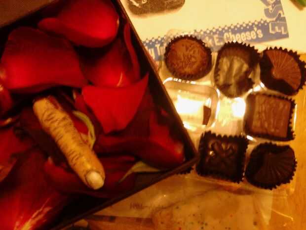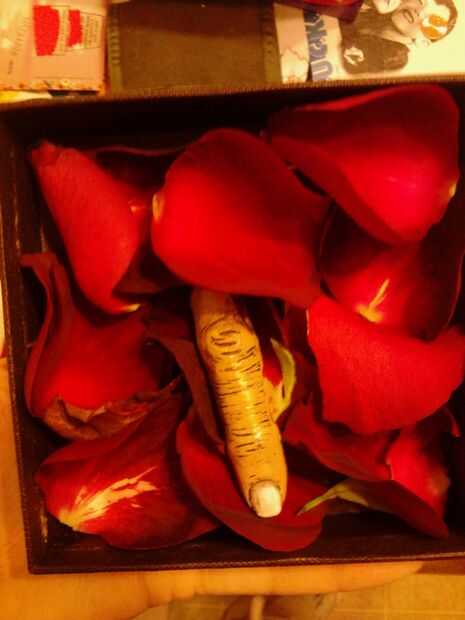 Tirar algunos pétalos de las rosas y de la capa para cubrir el fondo de la caja