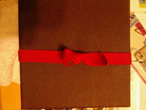 Colocar la tapa en la caja y la tapa con la cosa de lujo cinta roja