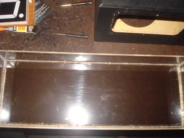 Hacer una caja de caja de reloj. (hace con la hoja plástica de acrílico + pegamento)