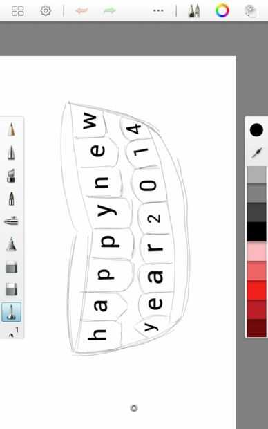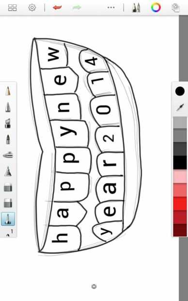 Haga clic en palabras feliz año 2014 a la boca y moverlo en los dientes. dientes de un alfabeto uno.