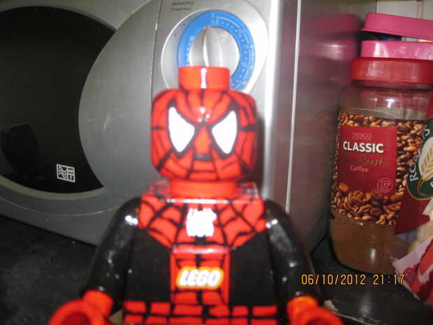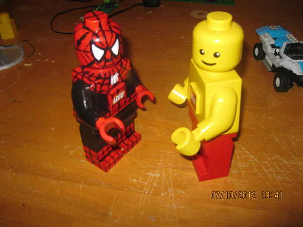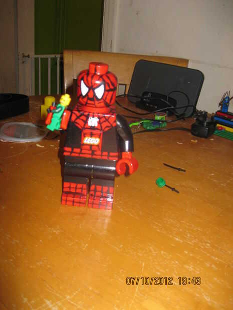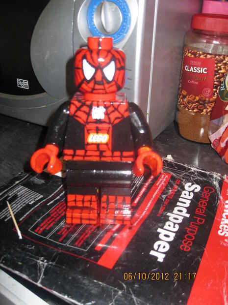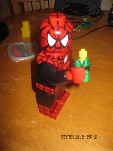 esta era una idea al azar que dejó juntos, como mi hijo le encanta spiderman y lego decidí combinar las dos Esto fue una antorcha de hombre lego que fue pintada con pinturas plasticoat. no es mi mejor trabajo, pero un proyecto de diversión cinco minutos