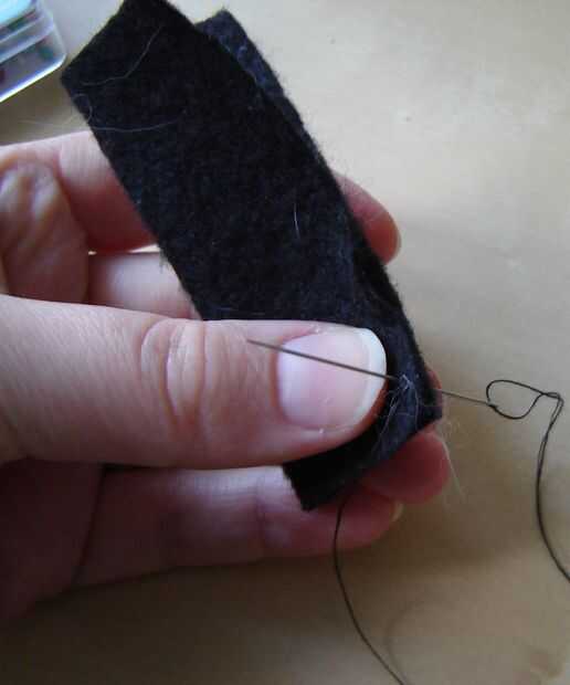 • Ahora coser el titular (con el cable en él) a la parte inferior interior del conector plata.  Cosí esto a la tela traslapando la costura para que el hilo no muestra a través de la parte externa de la tela).