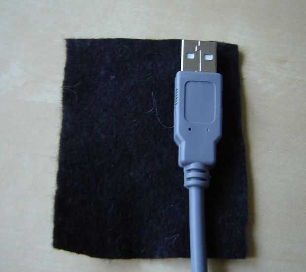 • Hacer una hendidura en el negro sentía del extremo del conector USB para que el enchufe macho puede pasar a través.