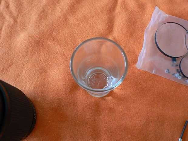 Porque el labio de mi vaso era apenas más pequeño que la abertura, se sentó un poco demasiado bajo para ser seguro, por lo que he añadido a un separador que vino de otra parte de la lente para subirla una fracción (Foto 3).
