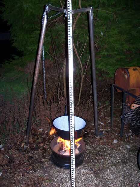 Para contener el fuego, estoy usando un borde de acero viejo. Es un poco más grande que la olla, y gracias a sus agujeros no debe preocuparse acerca de ventilación. Como se puede ver en las fotos, está trabajando muy bien.