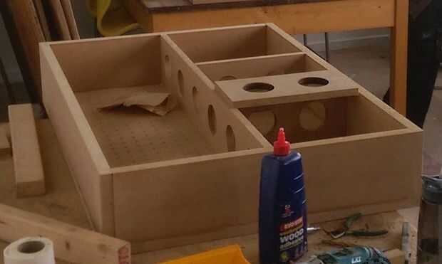 Así primero el bit simple, todas la tabla del vacío realmente es una caja hueca con forma de dibujo un vacío y una rejilla de agujeros. Optamos por construir fuera de MDF, pero funcionaría cualquier material fuerte de la hoja. Su siguiente problema es decidir cómo para perforar los agujeros optó por utilizar una plantilla espigada pero usted puede conseguirlos cnc ruteado.