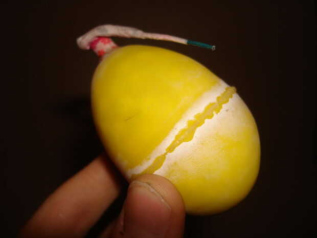 4. Agregue el pegamento estupendo todo alrededor donde el petardo se une con el huevo de Pascua.