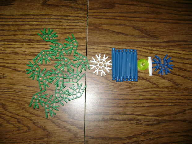 necesitamos 8 conectores amarillos, 8 conectores verdes, 3 conectores blanco, 8 barras verdes y 1 barra azul.Paso 1: paso 1 emparejar 8 conectores amarillo utilizando 4 barras verdes.Paso 2: paso 2 emparejar 8 conectores verdes con 4 barras verdes.Pa