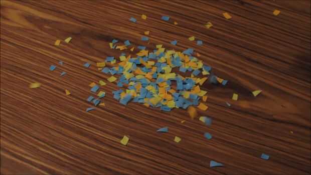 Para más cantidad de humo yo sugiero para cortar pelotas de ping pong en pequeños trozos. No pequeña pequeña, pero pequeña. Sobre un cuadrado de un centímetro. Aunque no he probado a moler en un polvo. Para este Granada de humo usé 4 pelotas de ping pong.