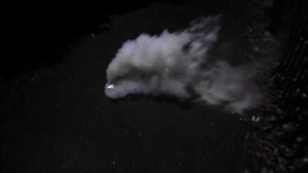 Ahora ir al aire libre, enciende por un lado de la hoja de la calefacción. Usted quiere asegurarse de que pedazos de pelotas de ping ping encienden sin tocar una llama desnuda y caliente. Después de menos de un minuto debe ver algo de humo, tirarla o coloque en el suelo y disfrutar de su Granada de humo.