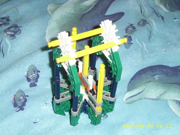 una modificación a una Granada de KVG famoso por halo99. excepto sin la metralla y con 3 bandas de goma.PARTES:16 conectores rojo8 conectores amarillos2 conectores blanco2 conectores de ranura simpleuna barra amarillaun espaciador grisun conector en