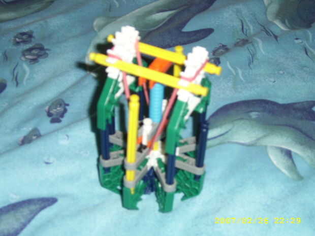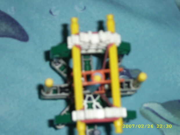 una modificación a una Granada de KVG famoso por halo99. excepto sin la metralla y con 3 bandas de goma.PARTES:16 conectores rojo8 conectores amarillos2 conectores blanco2 conectores de ranura simpleuna barra amarillaun espaciador grisun conector en