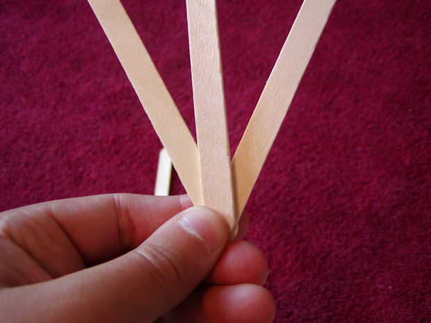 Tomar 3 palillos y poner un frente izquierdo, uno derecho y uno en el centro. EL CENTRO TIENE QUE ESTAR EN LA PARTE SUPERIOR DONDE SE CONECTAN!