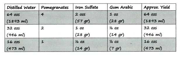 Consulte la tabla arriba para las cantidades de cada ingrediente a utilizar a lo largo de este Instructable, según el volumen de tinta que desea terminar con. Usted tiene la opción de usar la Granada entera o de omitir las semillas. La primera vez que hice esto, las semillas y el resto de la Granada de tinta. La segunda vez que he hecho, incluí las semillas. Funciona de cualquier manera y no noto mucho de un color o una diferencia tonal entre los dos lotes.