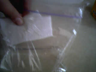 Llenar la bolsa con 1/3 de vinagre y poner la toalla de papel con el bicarbonato de soda en él.