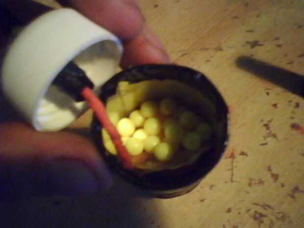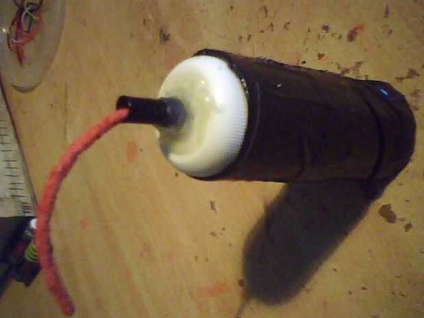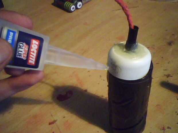 Lo que hice fue primero fue recoger partido aplastado cabezas que tenía anteriormente de mi instructable, fusible y utilizó esto para mi Granada, añade una pequeña cantidad dentro de la cerradura del cierre relámpago anchos junto con el fusible y ha añadido una cantidad muy pequeña de la pequeña cantidad de pegamento, para soldar con autógena la bolsa cerrada, entonces simplemente rellena su interior el chasis metálico y empujó el fusible a través de la paja caliente pegado en lugar , añadiendo unos BB, luego pegué con pegamento caliente no pegue la tapa de la botella el correcto camino alrededor y a la izquierda para secar antes de la prueba.