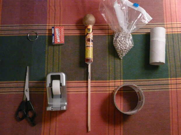 Paso 1: materiales Necesita tubo de PVC, un globo, cinta adhesiva y bbs de airsoft.Paso 2: globo Corte final del globo y luego poner alrededor de la pipa del PVC.Paso 3: cinta Envolver cinta alrededor para que no caiga.Paso 4: dispara 1-3 bbs de carg