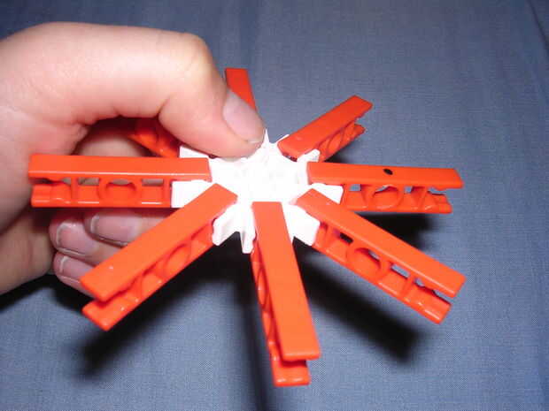 bueno este es mi tercer instructable, esto no requiere barras, esta es la lista del edificio; 8 conectores naranja, 2 conectores blancos y 16 conectores rojoPaso 1: Base Hacer este paso dos veces.Paso 2: cuerpo ahora si tienes 2 caras de una Granada.