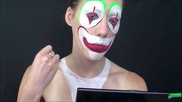 con eso rojo que también pinté en mi sonrisa, que sólo cubre mi labio inferior. Consigue un delineador negro añadido una línea fina en el interior las esquinas de mis ojos.