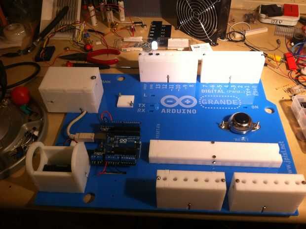 Usted puede también seco-cupo el resto de los componentes para asegurarse de que todo encaja muy bien antes de pasar. Aquí está una mirada en el tablero con componentes temporales blanco en su lugar.