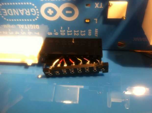 En cada conector de banana, soldar un trozo de cable suficiente para ruta a través de la Junta a la Arduino real. Pasar los cables en la parte inferior de la Junta Directiva en la ubicación de la cabecera, luego inserte y montar los bloques de cabecera con tornillos y tuercas que se celebrará en ranuras en t de acrílico.