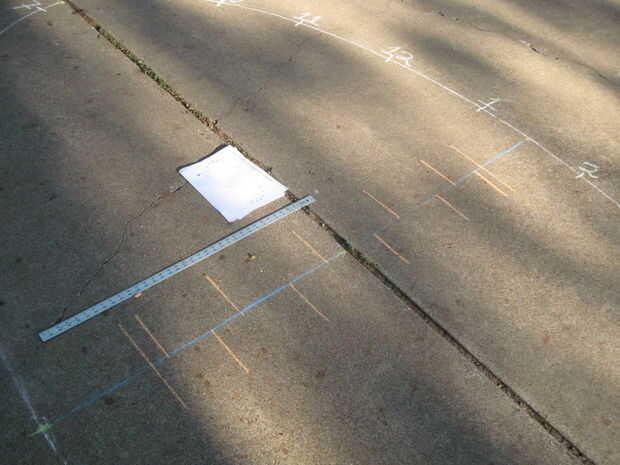 analema (debido a la inclinación de los polos de la tierra, la elipticidad de la órbita de la tierra y la inclinación de la órbita de la tierra). Pero queremos que nuestro reloj de sol a la misma hora cada día a la vez! El reloj de sol Analemático soluciona este problema al mover el gnomon, el elemento vertical que proyecta la sombra--en posiciones diferentes en diferentes épocas del año para corregir la posición del sol recorriendo el analema. (En realidad, esto sólo corrige la variación en declinación. Hay una tabla de corrección para el otro, más pequeño, tipo de variación en el paso siguiente.)