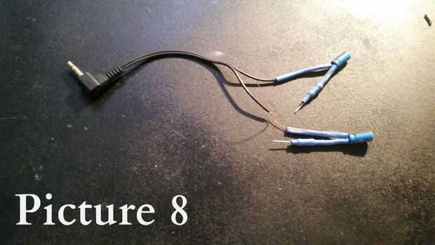 Usé al 1/8"(3,5 mm) conector del adaptador de cassette para soldadura todos estos juntos (ver figura 8). Si usted está teniendo problemas con suelda estos cables como yo lo hice, trate de quemar el aislamiento interno (es generalmente de color) con un mechero. Funciona de maravillas!