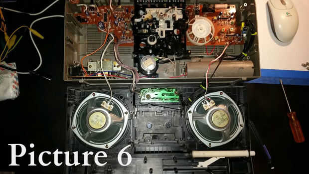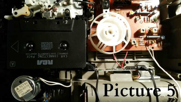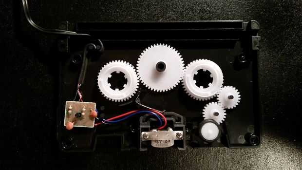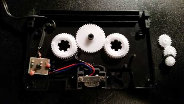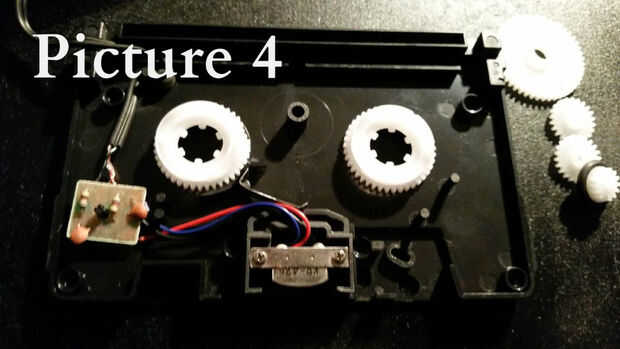 La correa del motor en mi radio está desgastada y necesita ser reemplazada. En el tiempo mientras busco un reemplazo, aún quería llegar este hecho. La respuesta sólo razonable fue todo lo que hace que cualquier fricción en el motor eliminar. Después de quitar estos 4 engranajes, funcionaba como un encanto (véase cuadro 4).