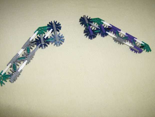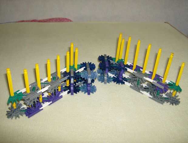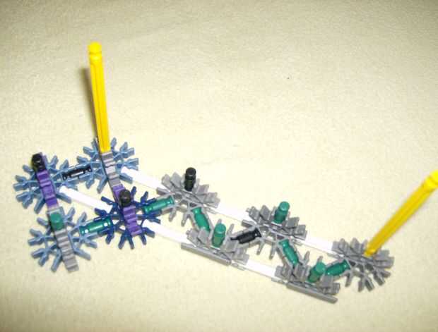 Foto 6: Combinan la parte superior e inferior que al igual que en la foto. (No conecte las varillas amarillas a los inferiores, simplemente deje em.