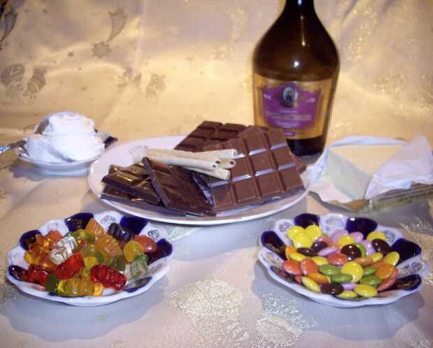 -3 chocolates enteras (puede usar oscuro, leche y taladre el blanco unos)