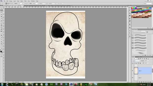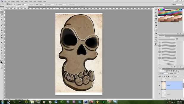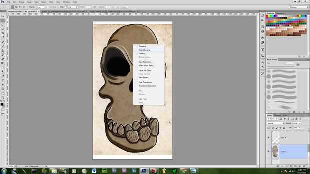 poner la textura en su propia capa sobre el zócalo del ojo y el color de la capa y asegúrese de que cubre el área entera del cráneo y luego lo de "normal" ir al modo de capa en cambio Subexposición lineal entonces pulse ctrl y haga clic en el capa de color en el panel capa, mientras que en la selección herramienta haga clic con el botón derecho clic en seleccionar inverso y borrar la textura extra.