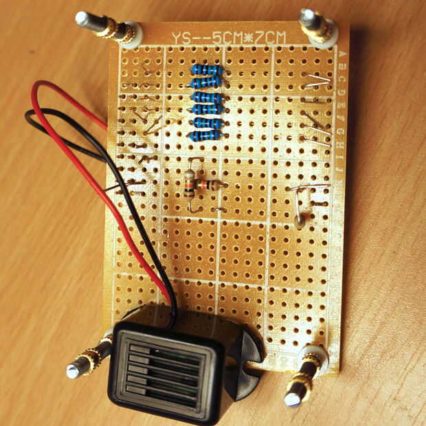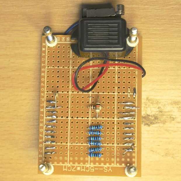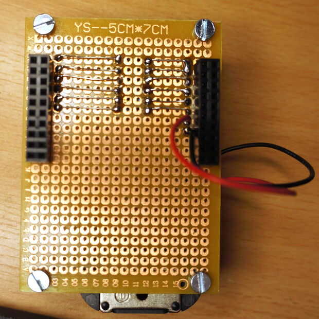 Usé un perfboard estándar de 7 x 5 cm. Esto da más que suficiente espacio para todas las partes.