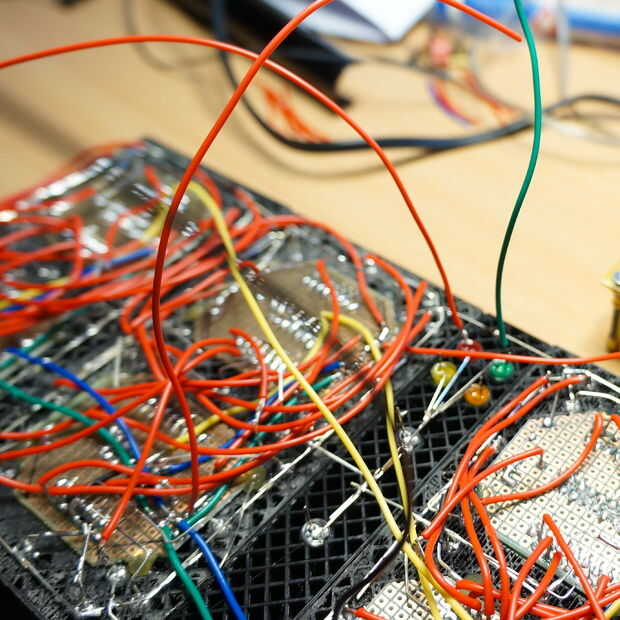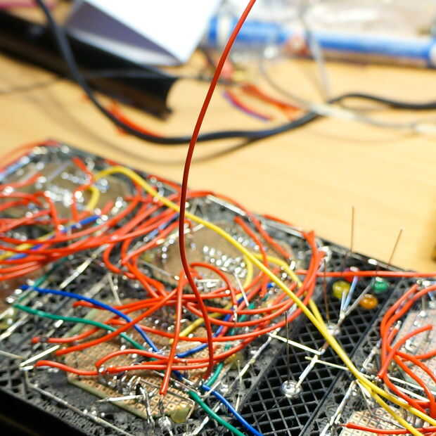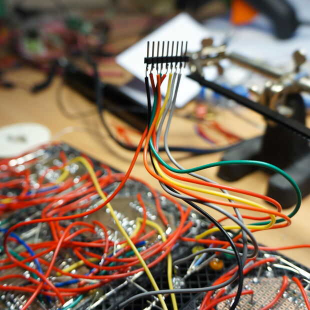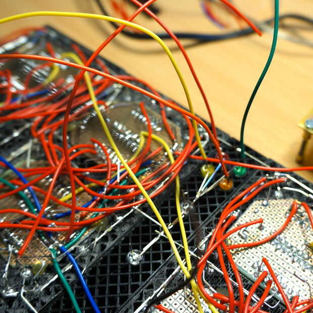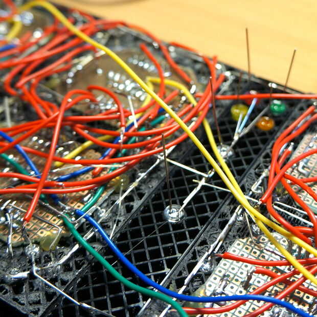 - La soldadura de los seis cables de los LED y los cables de corriente y tierra a un jefe masculino en este orden: