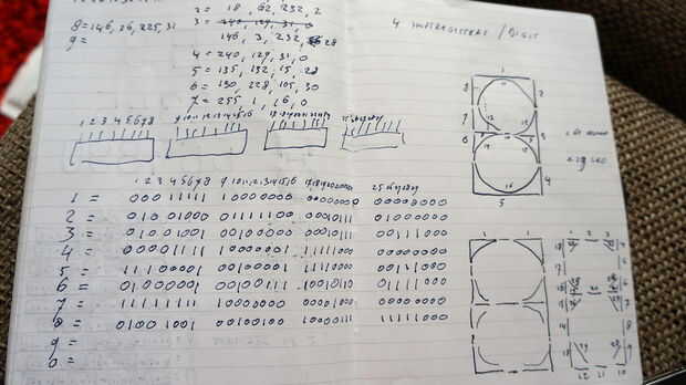 Para hacer los números y letras en el reloj tienes que hacer algún cálculo binario: