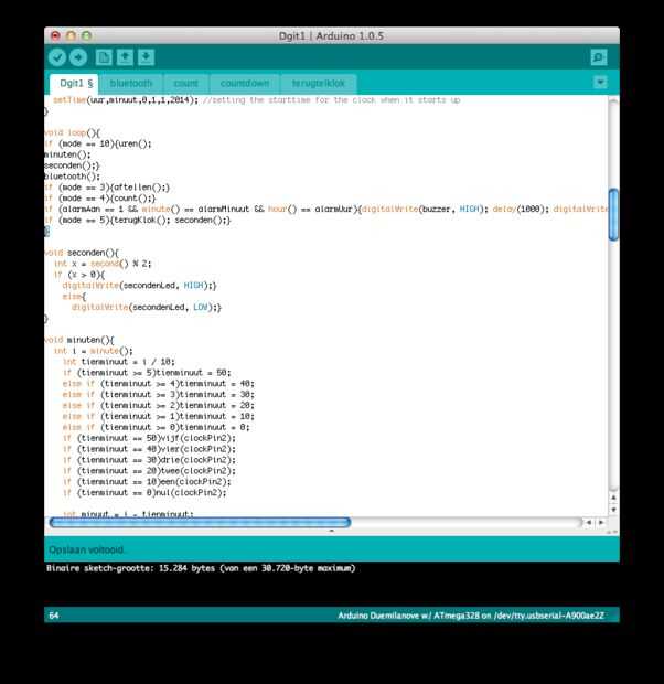 Para cargar el bosquejo necesita desconectar el módulo de bluetooth o pulse el botón del reloj mientras se cargan.