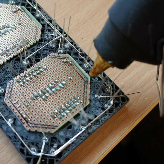 • Pegamento el PCB s la cifra con algunos globos de pegamento (caliente)