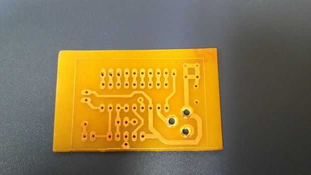 Hacer mis tablas con el "toner transferencia y etch" método. Tuve que agregar unas vias y ser creativo con mi soldadura ya que no tengo un agujero a través de proceso de la galjanoplastia, pero era capaz de conseguir todo lo relacionado. Comprobar el circuito con un metro después de que los componentes se colocan para asegurarse todo es como debe ser.