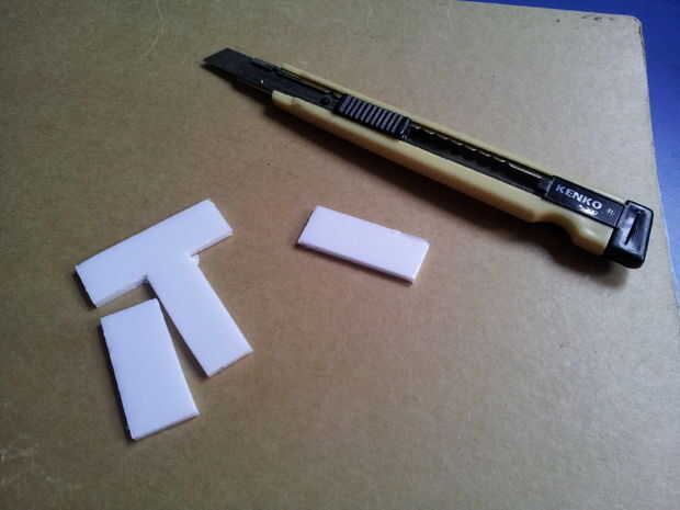 2) cortar pedazos regulares de placas de espuma que formando las letras.