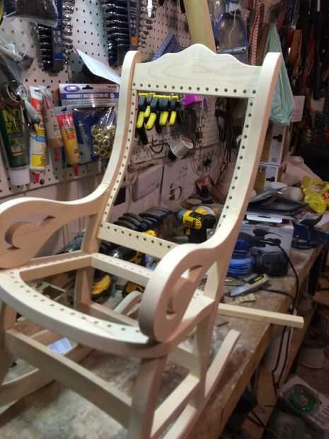 Aquí es una silla mecedora que hice para el cumpleaños de mi novia utilizando madera contrachapada rusa.Después de pasar demasiado tiempo leyendo acerca de la relación de longitud/radio de altura y pata de silla perfecta decidí buscar pinterest para