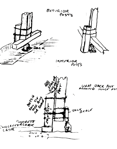 Después de reparar los problemas estructurales menores necesitaba a jack el edificio hasta reemplazar la fundación piedra desmoronada. Que trata de la primera herramienta personalizada para toma la estructura. Tuve varios criterios, tenía que ser tan estable como si el edificio estaban sentados en el suelo, que permiten ajustes muy pequeños, tuvo que acceder claro permitir la formación en la nueva Fundación y tuvo que ser barato.
