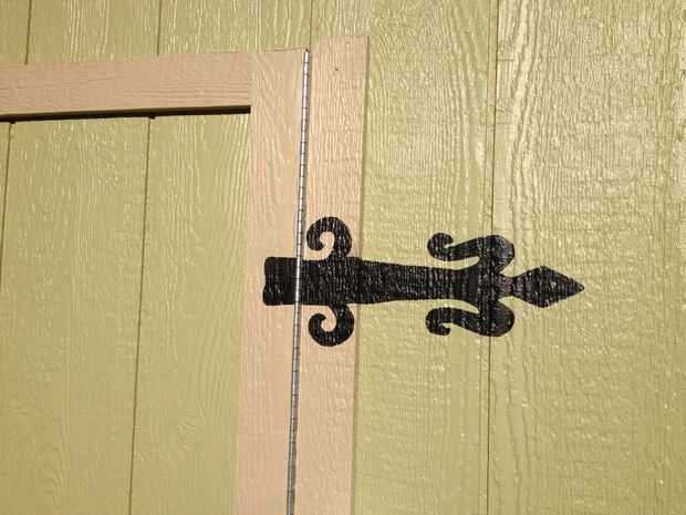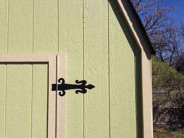 Hemos añadido un pedazo de broche de oro de hierro forjado en la parte superior del granero para terminar la mirada. Voila! Nuestro galpón tiene estilo.