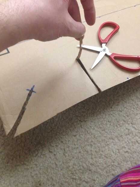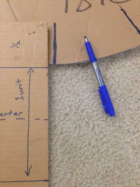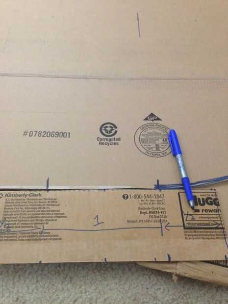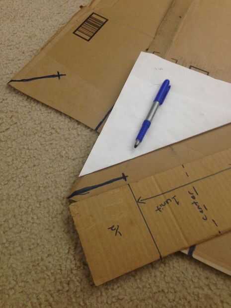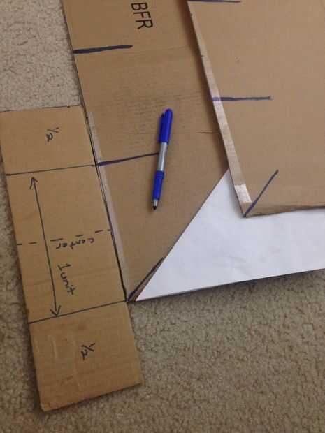 - Utilizar la plantilla y un segundo cuadro como una escuadra y regla, encontrar dos piezas de cartón que funciona para sus paredes de 5 x 5.5 unidad.