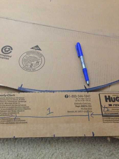 - Marcar la base y los lados utilizando la plantilla y un borde recto. Nota: es más fácil de cortar a lo largo de una línea continua de una línea discontinua. Seguir adelante y marque los cortes lo mejor posible.